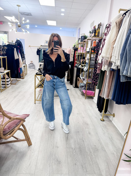 Black Soft Ribbed Half-Zip Long Sleeve Sweatshirt
