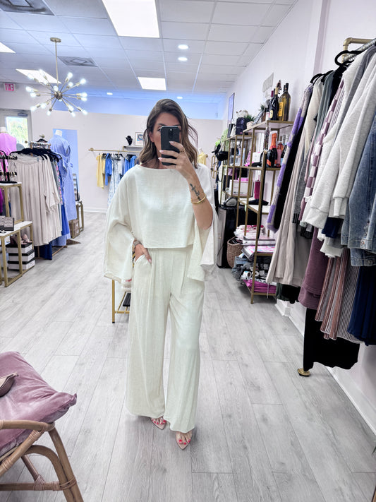 Natural Boat Neck Top & Pants SET