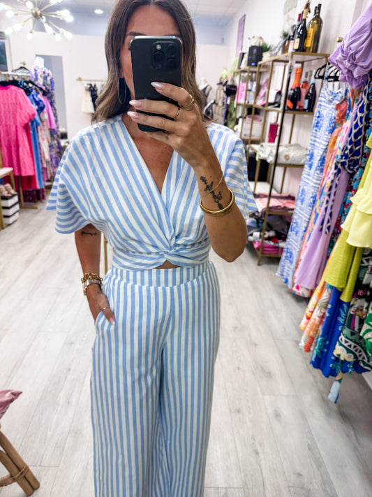 Light Blue V Neck Sleeveless Tunic & Shorts Set