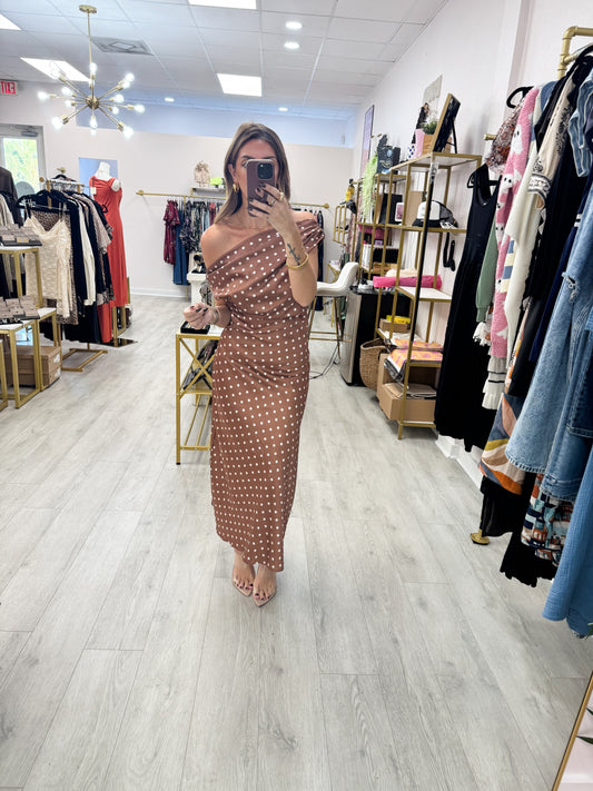 Satin Polka Dot Cowl Neck Maxi Dress