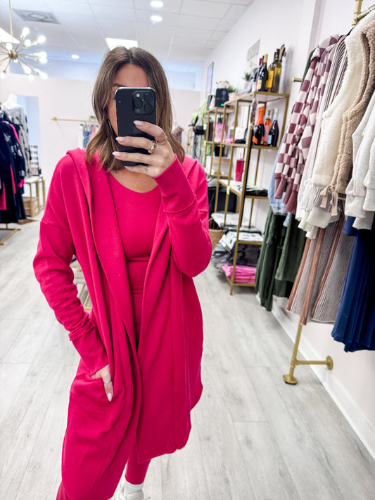 Plum Pink Longline Hooded Cardigan