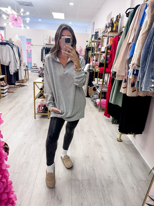 Heather Gray Double Knit Half Zip Up Long Sleeve Pull Over
