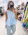 Blue Gingham Sleeveless Peplum Top With Side Ties