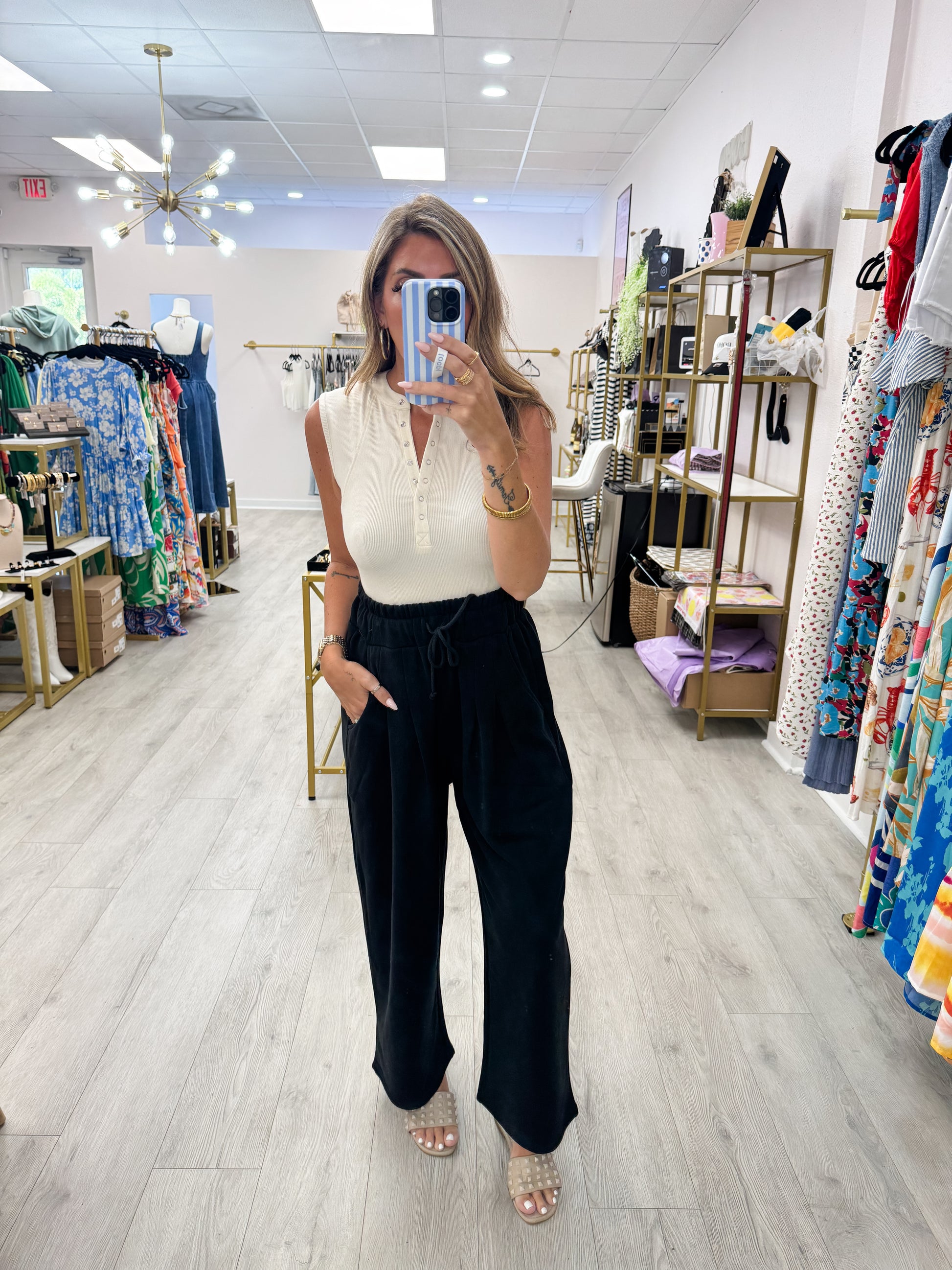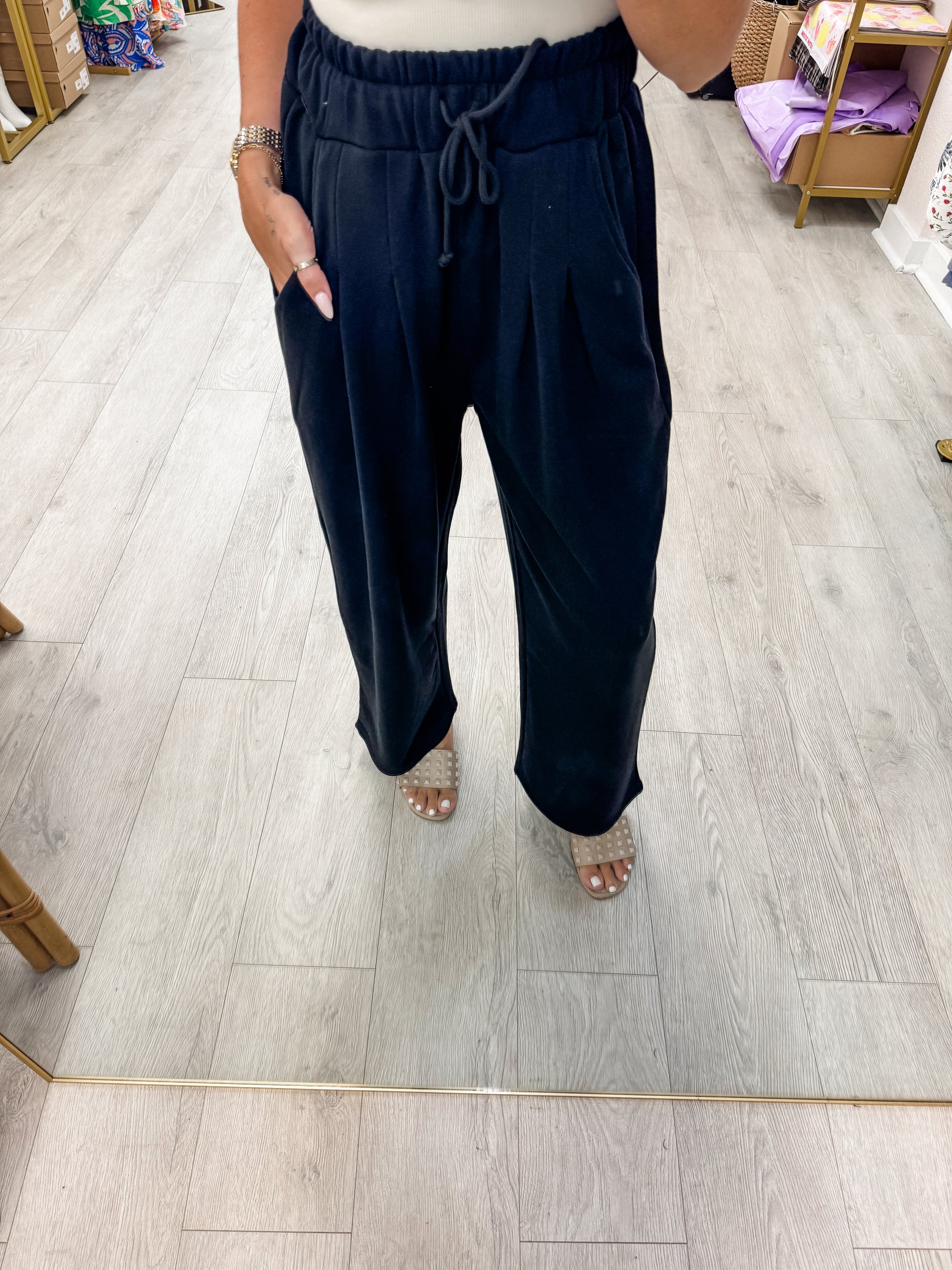 Laid-back meets pulled-together. Made from a breathable cotton blend, these wide-leg pants are all about relaxed comfort with a clean finish. A functional drawstring waistband lets you find your perfect fit, while side pockets and a single back pocket add everyday practicality. Whether you're running errands or lounging in style, these are your new go-to for effortless cool.