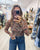A floral-print mesh top with the following features: High mock neckline. Long raglan sleeves. Thumbhole cuffs with lettuce-edge finish. Lettuce-edge hem. Sleeveless lining. Cropped length. Fitted silhouette.