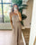 Light Khaki colored jumpsuit with smocked waist and adjustable tie straps to fit as needed! Key hole back detail.